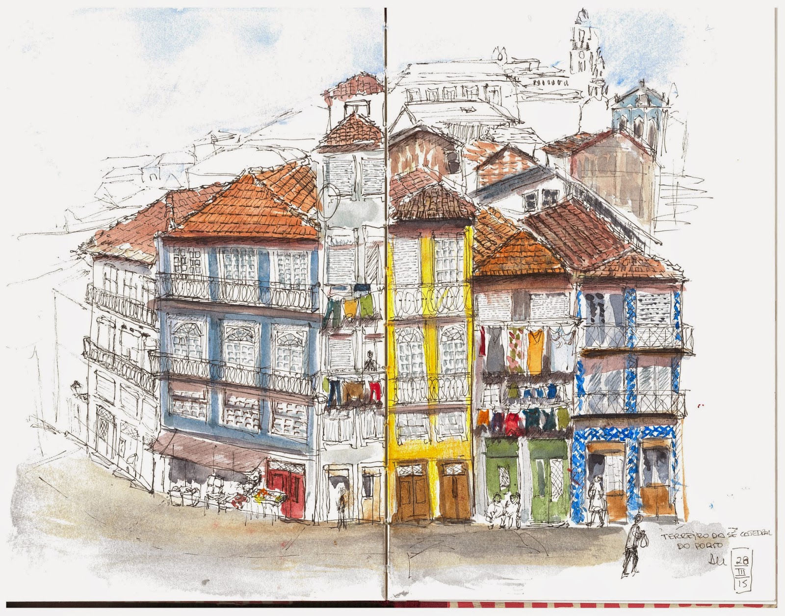 Durante a manhã, no terreiro da Sé, não resisti a registar o belíssimo casario aos meus pés. A cor só chegou em casa...