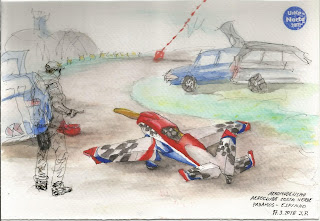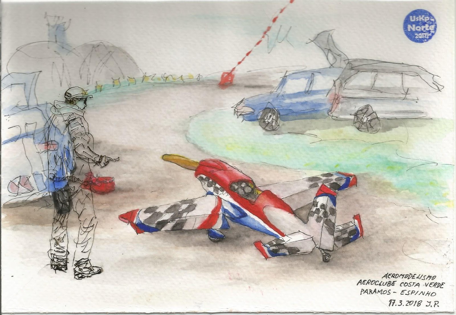 A tarde já ia longe...e abrigado do ventinho fresco, as ondas a baterem do outro lados das pedras...lá fui desenhando e dando uma cor...